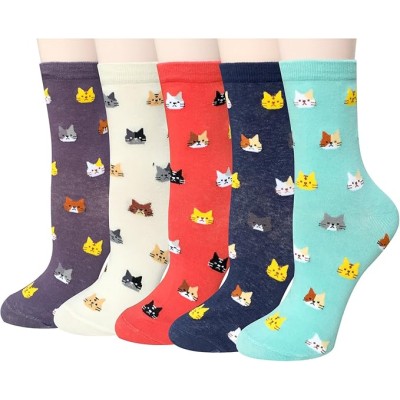 5 Pairs Womens Cute Animal Socks Colorful Funny Casual Cotton Crew Socks