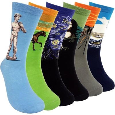 6 pairs Men Funny Pattern Fashionable Fun Crew Cotton Socks