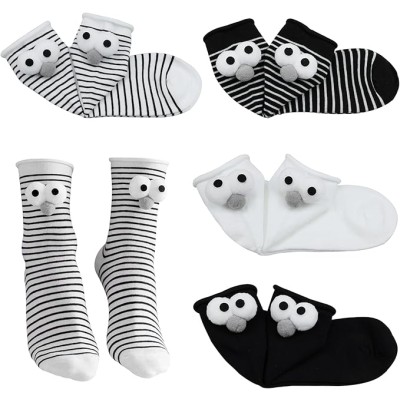 4 Pairs Women's Socks, 3D Doll Eyes Novelty Casual Crew Socks