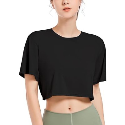 Womens Workout Tops Short Sleeve Crop T-Shirt for Women Cropped T-Shirt for Women Gym Tees Women