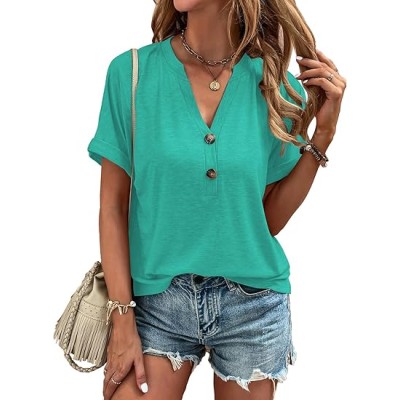 Womens Tops Trendy V Neck Button Down Short Sleeve Tshirts Business Casual Basic Tee Loose Fit