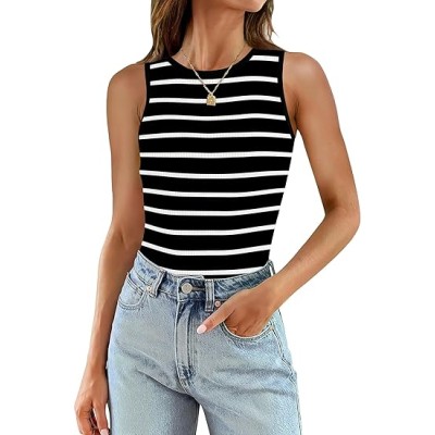 Ribbed Tank top for Women Trendy Crewneck Sleeveless Tops