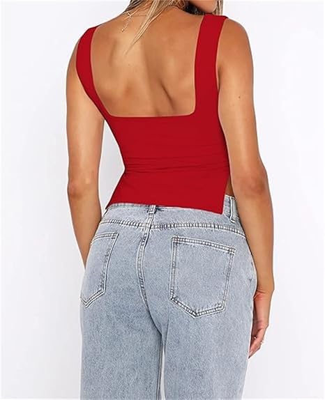 Trendy going out tops with side slits. Women sexy backless tanks, Teen girls sweetheart neck crop tops, Slim fit Y2K cami.