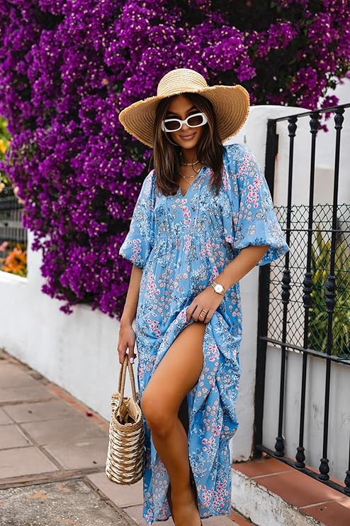 Featuring v neck to shape your figure and highlight your waist, a deep v-neckline, Ankle length, and vivid pattern. This Floral Maxi Dress Can Complement Your Patterned Pieces in All Seasons.